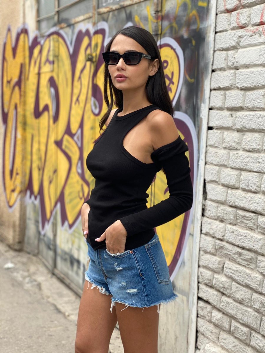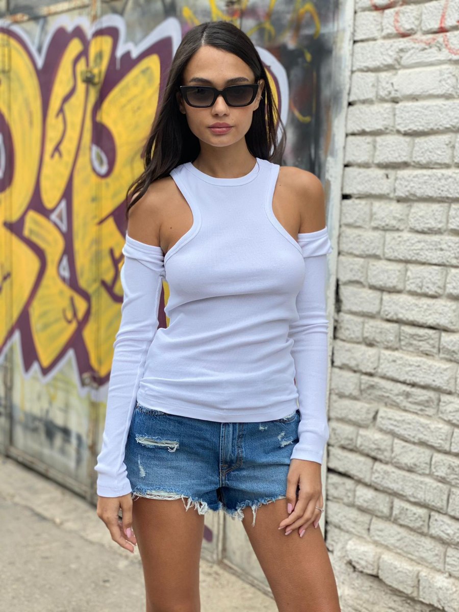 - עליונית ריבס קצרה עם שרוול ארוך
