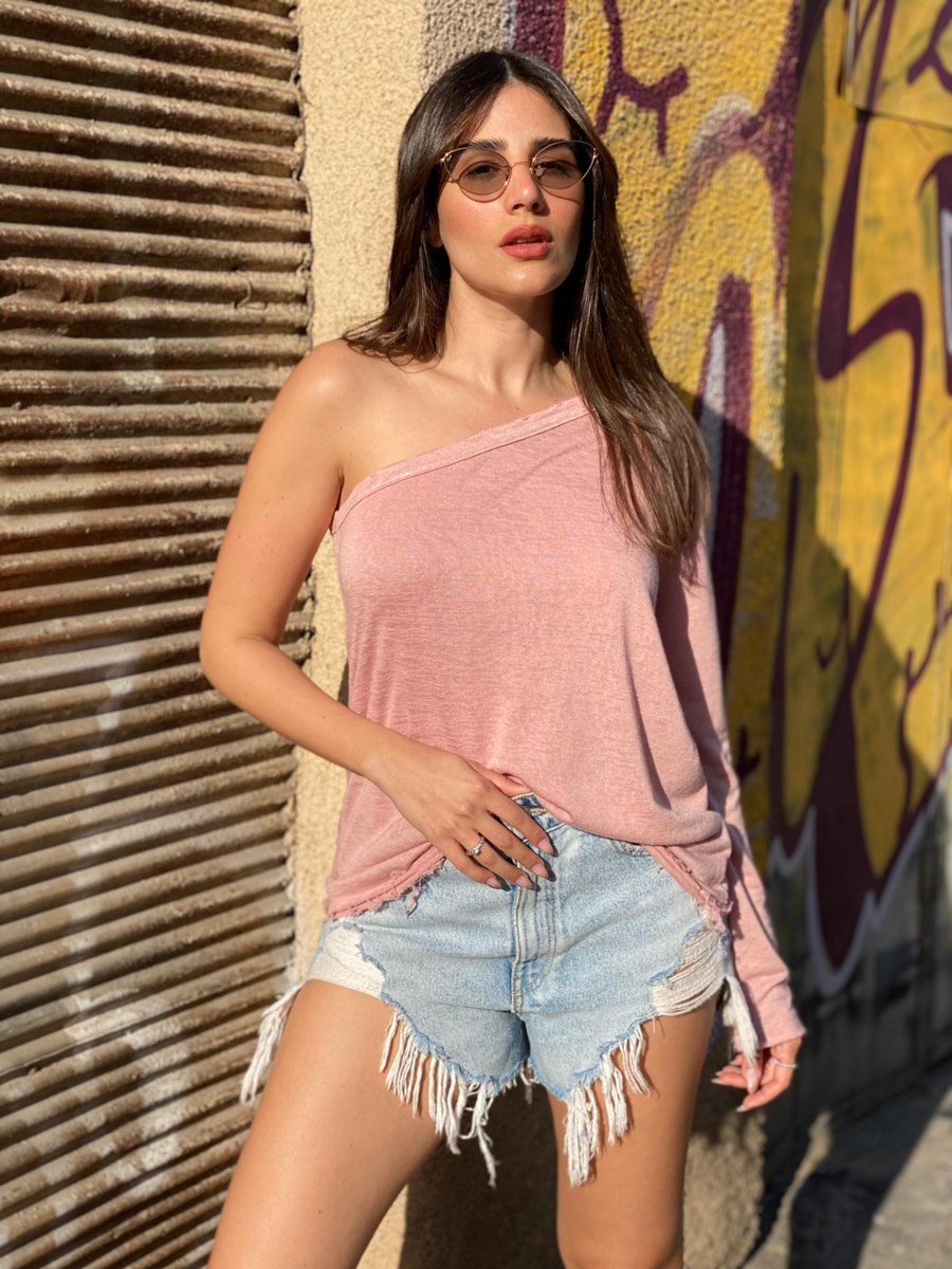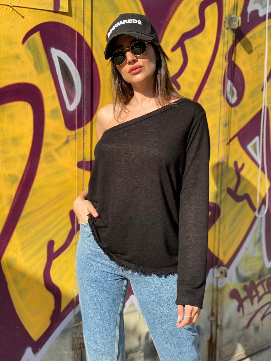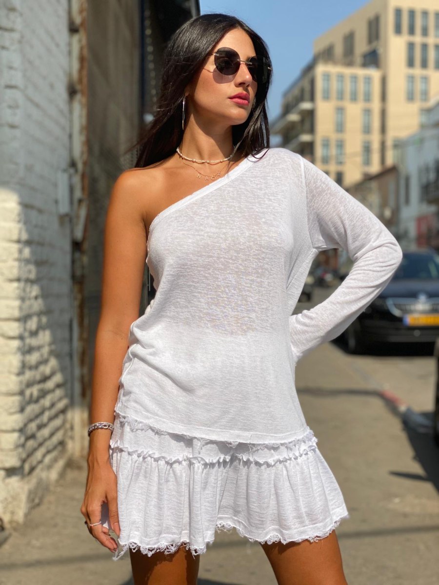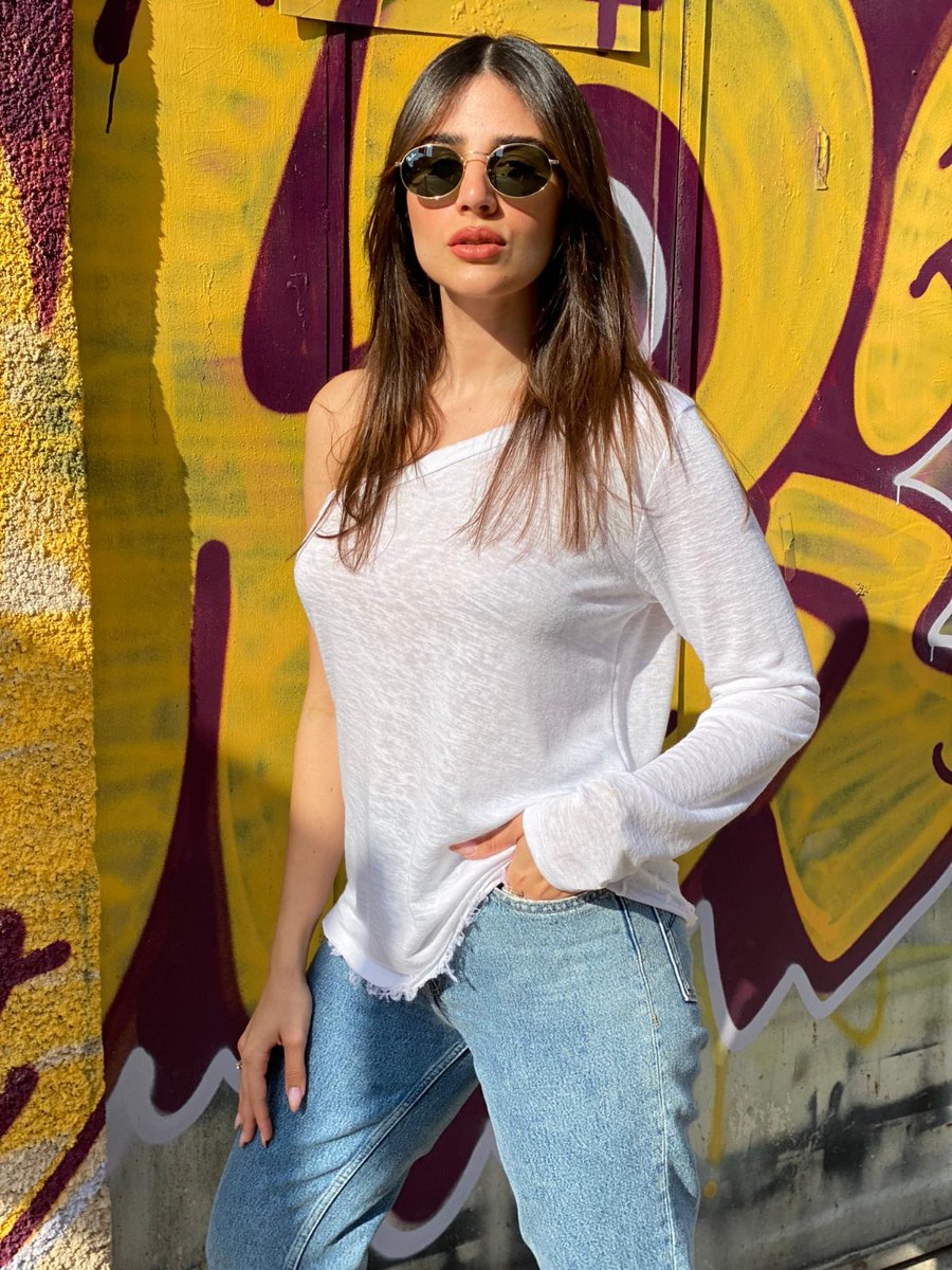 - טישרט בגזרת כתף אחת מעט משוחררת