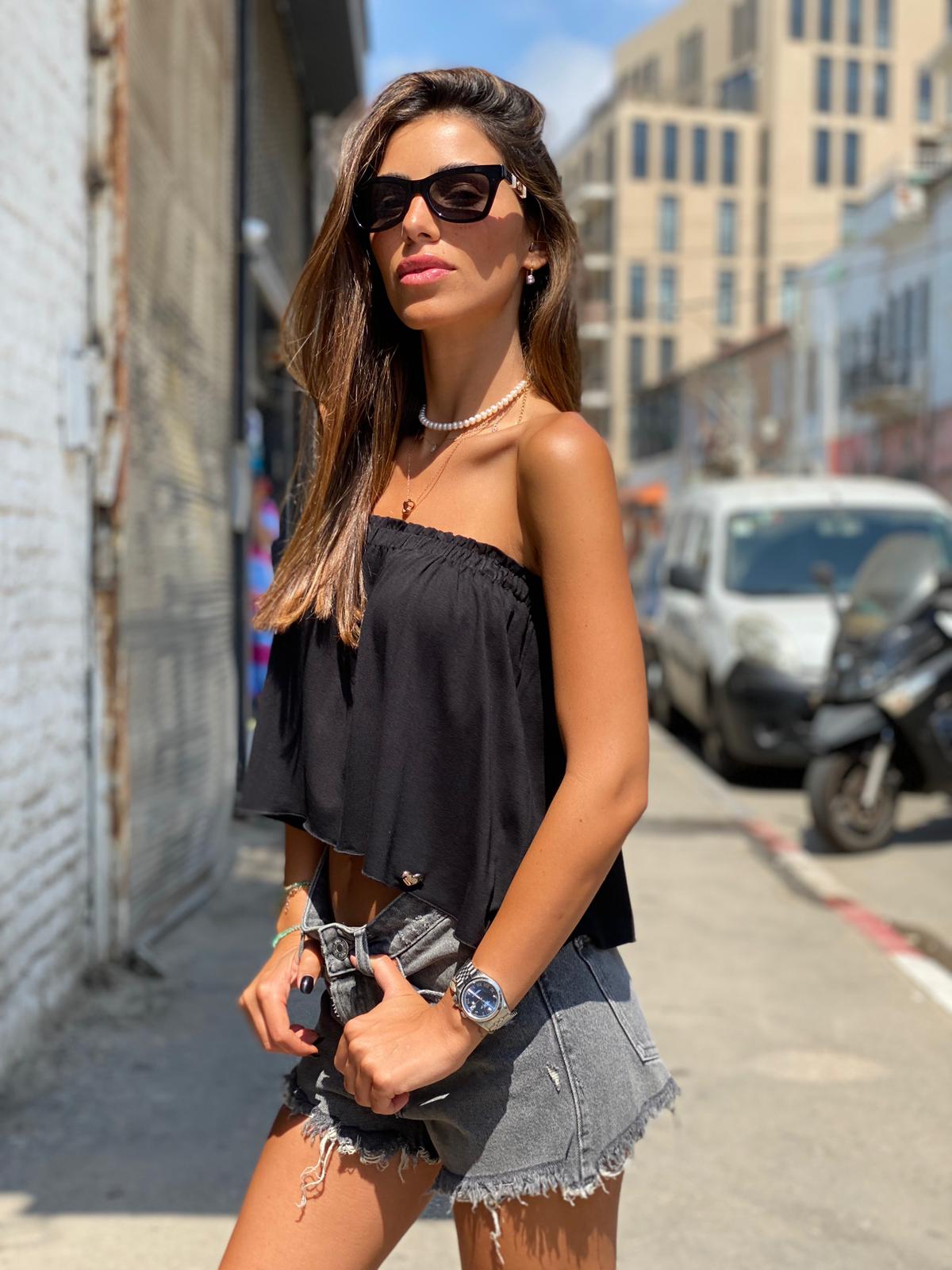 - סטרפלס בגזרה רחבה וקצרה טרנדית